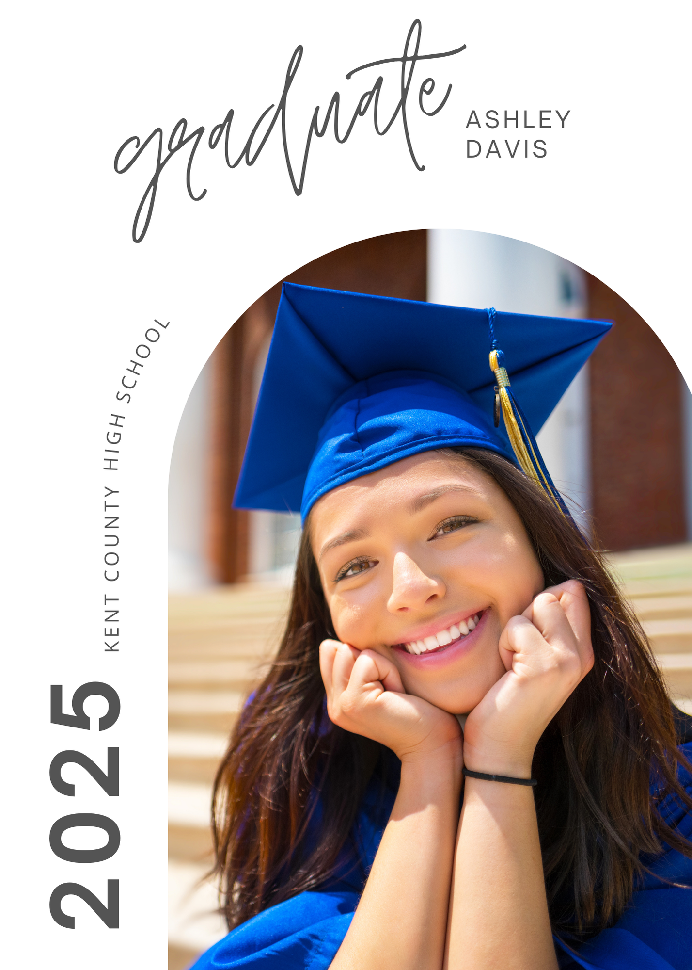 Celebrate your graduate’s big achievement with this elegant and modern graduation announcement template! Featuring a stylish mix of serif and script fonts, this design beautifully showcases your favorite photos while highlighting important details like the graduate’s name, school, graduation year, and future plans.